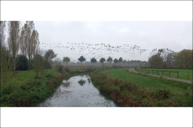 30 Oktober 2024. Heerlijk wandelweer, licht bewolkt. Op de brug, grensovergang Nederland Duitsland. "En de vogels vliegen van Oost naar West..."
