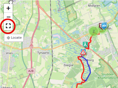 Bij de laatste update van de Pieterpad website hebben de routekaarten op de etappepagina's er een nieuwe mogelijkheid bij gekregen: full-screen kaarten. Je vindt deze optie in de linkerbovenhoek van de kaarten onder de knoppen voor in- en uitzoomen. De kaarten worden hiermee schermvullend weergegeven. Dat is op je telefoon al handig om makkelijker overzicht te krijgen en om door de kaart te bewegen. Maar op je computer, laptop of tablet is het resultaat nog veel indrukwekkender.. Door nogmaals op de full-screenknop te drukken ga je weer terug naar het normale formaat.