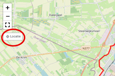 Als je GPS maar gedoe vindt en alleen maar af en toe wilt controleren of je nog goed zit kun je natuurlijk ook gewoon gebruik maken van de knop 'locatie' op de etappekaart van de Pieterpad website. Daarmee zie je in een oogopslag je eigen locatie op de routekaart en weet je of je nog op het goede pad zit.