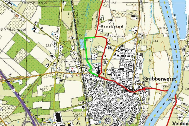 De route tussen Broekeind en Grubbenvorst is aangepast en loopt nu achter Huis de Steeg en achter het voormalig klooster over een onverhard pad.
