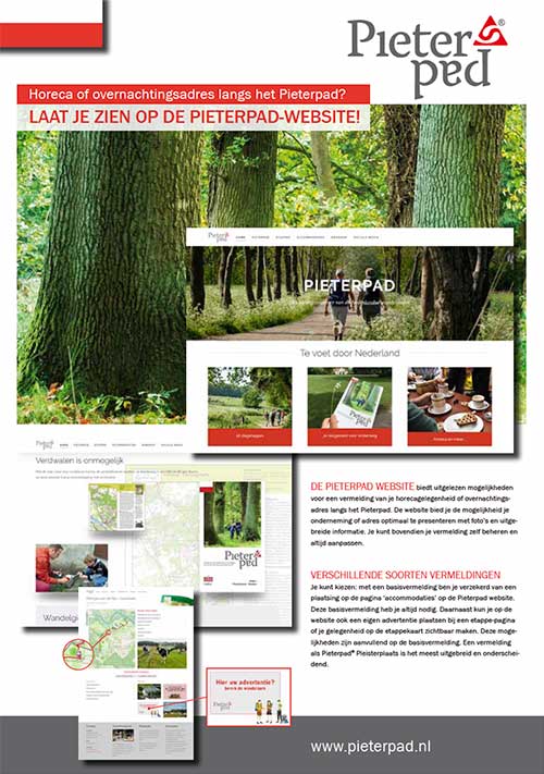 - Pieterpad® Pleisterplaats (€ 125,- p/jr) in aanvulling op basisvermelding.