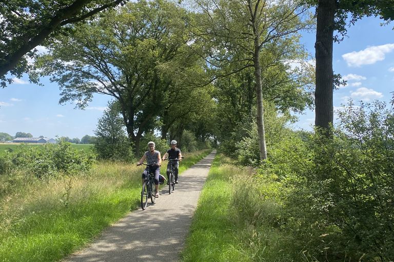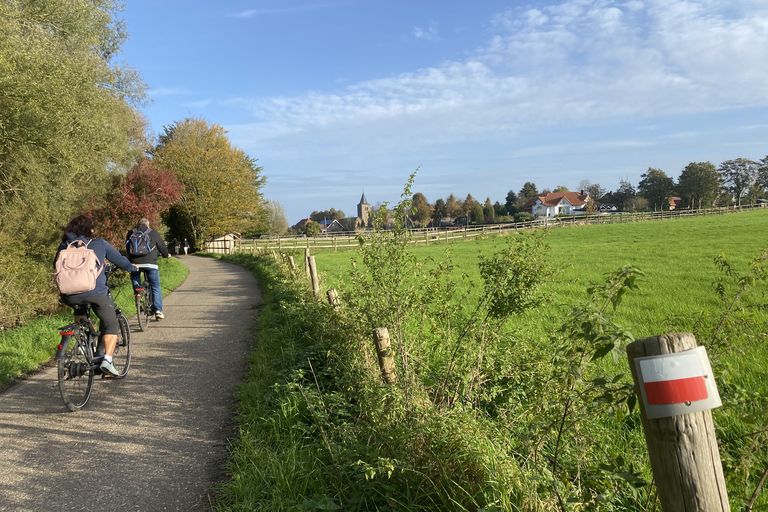 Je kunt fietsen op je eigen fiets, maar je kunt voor een schappelijk bedrag ook een (elektrische) fiets huren voor je tocht.