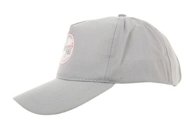 Klassieke lichtgrijze katoenen pet met vijf panelen en een verstelbare klittenband sluiting aan de achterzijde. Aan de voorzijde bedrukt met het Pieterpad-logo met de kaart van Nederland (doorsnede ca. 50 mm.).