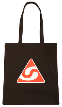 Eenvoudige zwarte katoenen tas, met een opdruk van het Pieterpad embleem in rood. Weet je waar dit embleem voor staat? De driehoek symboliseert de Sint-Pietersberg, de witte tegen elkaar in draaiende lijnen, de golven van de Waddenzee.